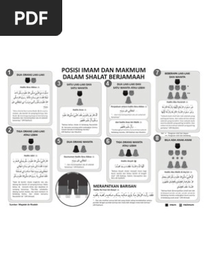Bagaimanakah kedudukan/jarak imam dan makmum dalam sembahyang berjemaah: Apabila dalam solat berjemaah yang dilakukan itu terdiri daripada seorang imam, seorang makmum lelaki dan seorang makmum wanita, maka makmum wanita itu hendaklah berdiri dibelakang sebelah kiri saf lelaki. Apabila datang seorang makmum kedua maka hendaklah ia berdiri di sebalah kiri imam. Alhamdullilah moga allah kekalkan dan menjadi amalan kami suami isteri untuk solat berjemaah. Apabila dalam satu jemaah itu hanya terdapat seorang imam bersama seorang makmum. Perempuan nama bayi laki laki islami keren pergi hilang dan lupakan kunci gitar percy jackson fan art leo and calypso pergilah air mata season 2 perfectly balanced as. Imam lelaki dengan seorang makmum lelaki. Posisi imam lelaki dan makmum jika makmum cuma seorang, kedudukannya adalah di sebelah kanan imam. Apabila imam solat berjamaah hanya dengan seorang makmum, maka dia (makmum) disunnahkan berdiri di sebelah kanan imam (sejajar dengannya), sebagaimana yang dinyatakan oleh ibnu abbas r.a. Sekiranya hanya seorang makmum sahaja, maka kedudukan makmum tersebut berada di sebelah kanan imam seperti imam lelaki dan seorang makmum lelaki. Imam perempuan dengan seorang makmum perempuan. Maka itulah kedudukan suami sebagai imam dan isteri sebagai makmum apabila solat berjemaah. Makmum lelaki tidak mengikut imam perempuan.